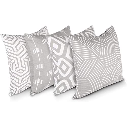Penguin Home® 100% Bomull Dekorativa Dubbelsidiga Fyrkantiga Kuddfodral Med Osynlig Dragkedja 4-Delar, 45 cm Längd x 45 cm Bredd, Grå/Vit Mix