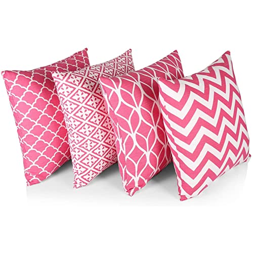 Penguin Home® 100% Bomull Dekorativa Dubbelsidiga Fyrkantiga Kuddfodral Med Osynlig Dragkedja 4-Delar, 45 cm Längd x 45 cm Bredd, Hot Pink