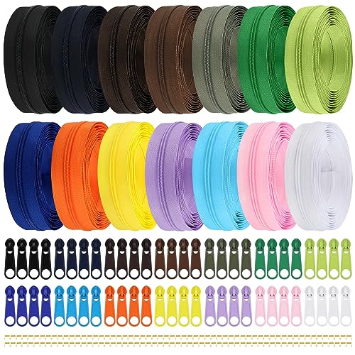 DOITEM 142,94 m/14 delar blandade färger #3 nylonspoledragkedjor, sömlösa dragkedjor med 56 delar dragkedja glidare dragkedja huvuden för gör-det-själv sömnad skräddarsydda hantverk tillbehör