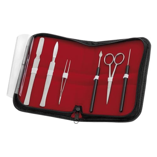 RSG mikroskopieringsbestick i rostfritt stål i konstläderväska med dragkedja, 6 delar