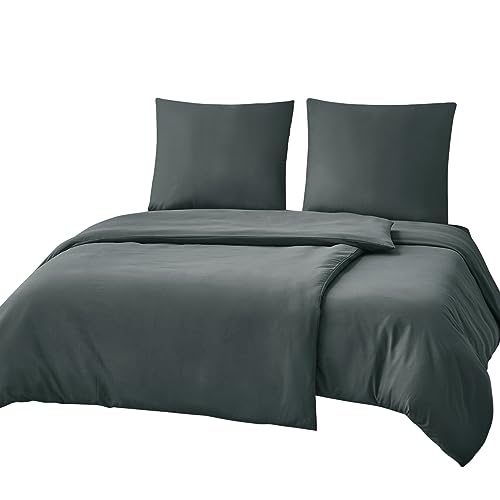 RUIKASI Sängkläder 220 x 240 3 delar grå – antracit mikrofiber sängkläder set Oeko-TEX, påslakan 220 x 240 cm 2 örngott 80 x 80 cm med dragkedja, mjuk och strykfri
