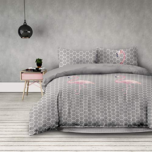AmeliaHome Sängkläder 2 delar 155 x 220 cm med 1 örngott 80 x 80 cm geometriskt mönster mikrofiber dragkedja basic kollektion flamingo ljus grå rosa