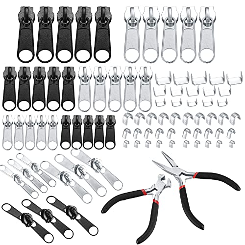 86 delar dragkedja reparationssats, metall dragkedja skjutreglage ersättningskit, dragkedja dragare flikar fixer med dragkedjetång, dragkedja dragset för reparation jeans, rockar dragkedja – silver/svart