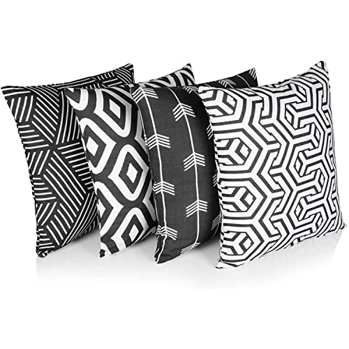 Penguin Home® 100% Bomull Dekorativa Dubbelsidiga Fyrkantiga Kuddfodral Med Osynlig Dragkedja 4-Delar, 45 cm Längd x 45 cm Bredd, Svart/vitt mönster