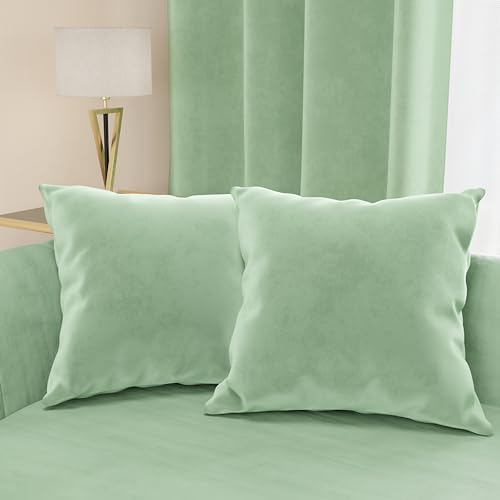 PETTI Artigiani Italiani - 2 kuddar i sammet med stoppning, sovrumskuddar, kuddfodral för sovrum, heminredning med osynlig dragkedja, 2 delar Sage sammetskuddar - 60 x 60 cm