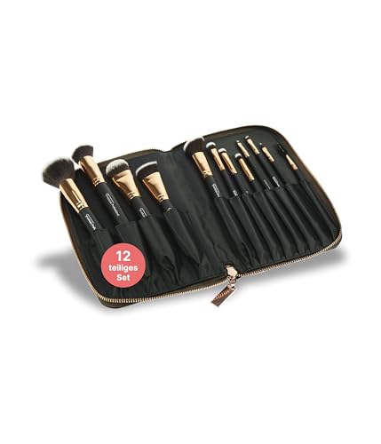 Fantasia Make Up penselset i 12 delar, syntetiskt hår, professionellt penselset smink, högkvalitativt sminkpenselset – svart i dragkedja