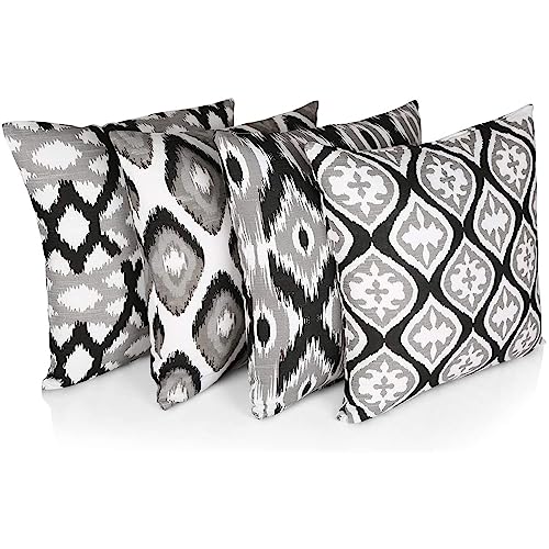 Penguin Home® 100% Bomull Dekorativa Dubbelsidiga Fyrkantiga Kuddfodral Med Osynlig Dragkedja 4-Delar, 45 cm Längd x 45 cm Bredd, Svart/Grå/Vit Mönster