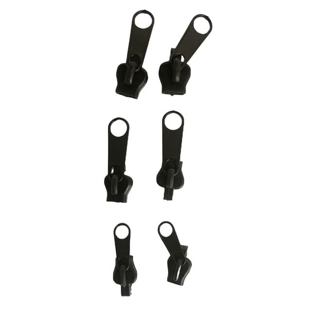 Universal blixtlås löpare för dragkedja 6-pack Svart