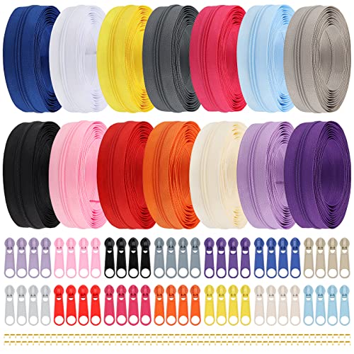 DOITEM Set med 2,8 mm nylon 39,2 m dragkedja med löpare och dragkedja för sömnad och hantverk, 14 färger