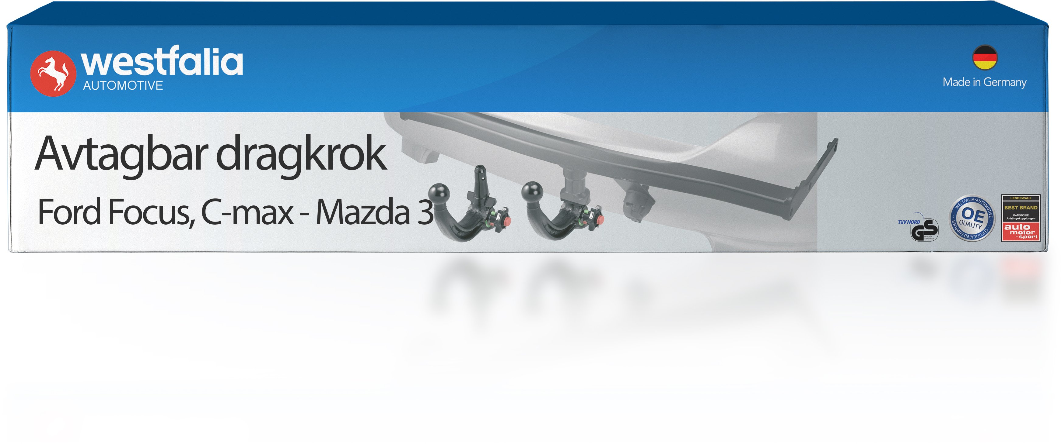 Westfalia Dragkrok med avtagbar kula - Ford - Focus, C-max. Mazda - 3