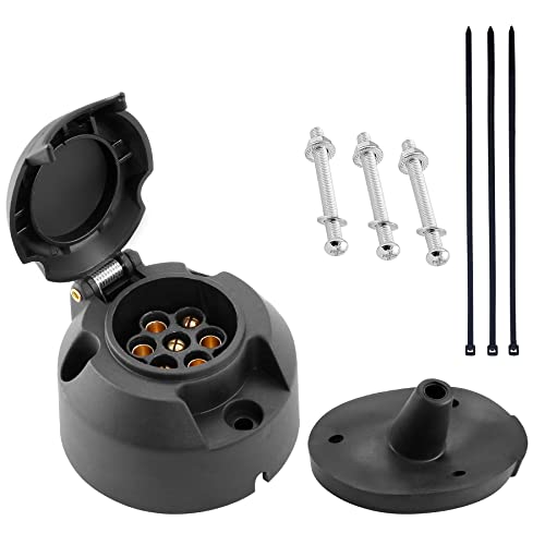 SPARKMOTO Socket 7 poler släpvagn, standard ISO1724,12V 7polig släpvagnsuttag, med packning vattentät isoleringssats för släpvagn, 7-stifts uttag kvinnlig släpvagn för bil RV dragkrok (rund)