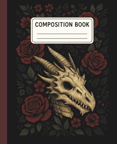 Composition Notebook - Dragon Skull and Roses themed: Wide Ruled 110 Pages, 9.25 x 7.5,: Unique Dragon Skull & Roses Design for Homework, Class Notes, Poetry & Daily Journaling