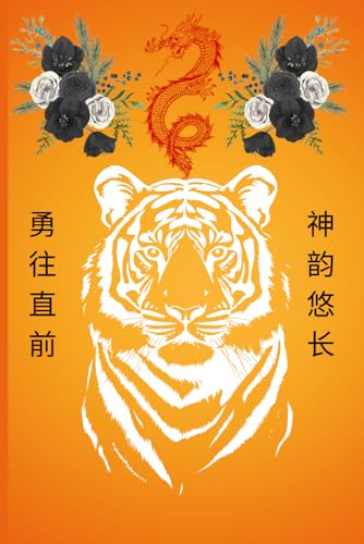 Tiger and Dragon Notebook: 120 Lined Pages with Rose & Dragon Interior - Design Features Chinese Calligraphy: 神韵悠长 & 勇往直前