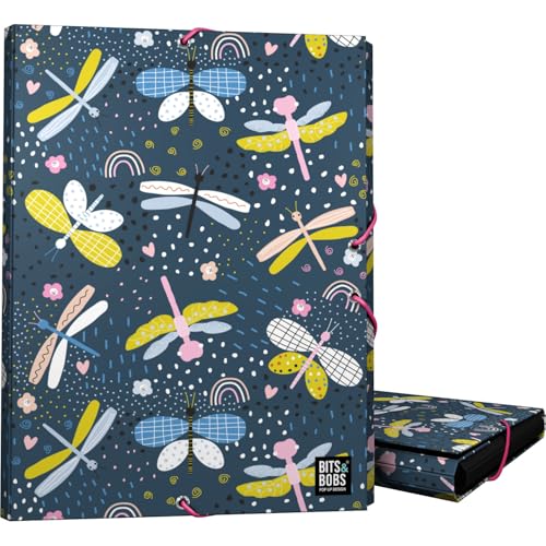 Grafoplas 3-klaff, fodrad kartong, hårt omslag, folioformat, Dragon Fly-design, bitar och Bobs Pop Up Design, mjuk att röra vid, FSC-certifierad, perfekt som skolmaterial