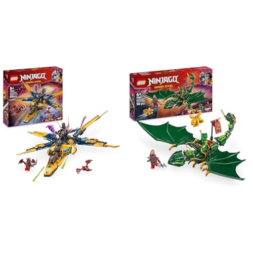 LEGO NINJAGO Ras and Arin’s Super Storm Jet + Lloyd’s Green Forest Dragon Figure Ninja Gift Idea for 6 Plus Year Old Boys, Girls 71833 + 71829