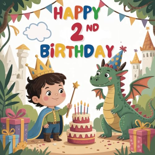 Happy 2nd Birthday: Birthday Guest Book for Party Kids 2 year old Theme Cute Prince and Dragon, Guest Sign in Written Wishes - Memory Album And ... Message Scrapbook, 50 Guests, 8.5x8.5 Inches