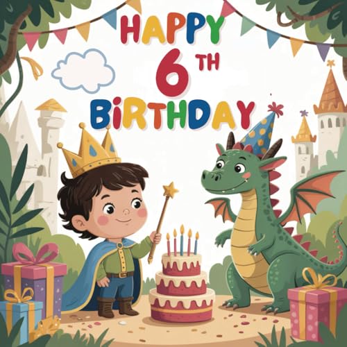 Happy 6th Birthday: Birthday Guest Book for Party Kids 6 year old Theme Cute Prince and Dragon, Guest Sign In Written Wishes - Memory Album And ... Message Scrapbook, 50 Guests, 8.5x8.5 Inches