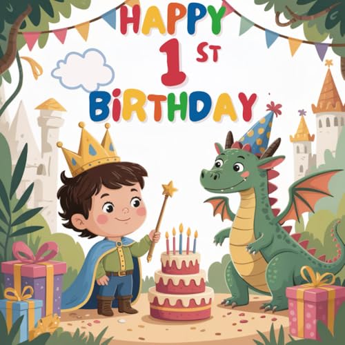 Happy 1st Birthday: Birthday Guest Book for Party Kids 1 year old Theme Cute Prince and Dragon, Guest Sign in Written Wishes - Memory Album And ... Message Scrapbook, 50 Guests, 8.5x8.5 Inches