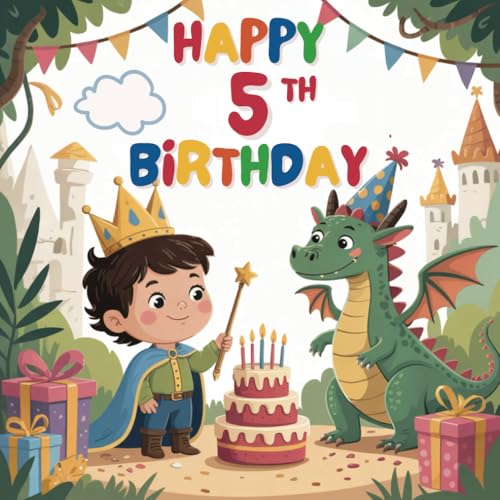 Happy 5th Birthday: Birthday Guest Book for Party Kids 5 year old Theme Cute Prince and Dragon, Guest Sign In Written Wishes - Memory Album And ... Message Scrapbook, 50 Guests, 8.5x8.5 Inches