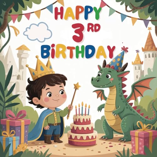 Happy 3nd Birthday: Birthday Guest Book for Party Kids 3 year old Theme Cute Prince and Dragon, Guest Sign In Written Wishes - Memory Album And ... Message Scrapbook, 50 Guests, 8.5x8.5 Inches