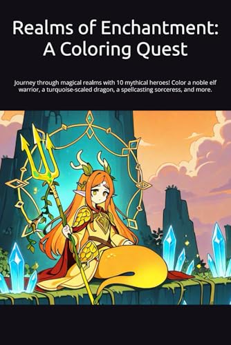 Realms of Enchantment: A Coloring Quest: Journey through magical realms with 10 mythical heroes! Color a noble elf warrior, a turquoise-scaled dragon, a spellcasting sorceress, and more.