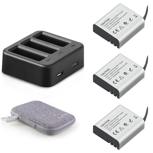 GeeKam Action Cam batteri uppladdningsbart 3 x 1 350 mAh med 3-kanals batteriladdare för AKASO EK7000/brave4/v50x/brave6, Apexcam, COOAU, Dragon Touch, Exprotrek, S009R, PG1050