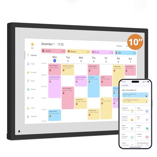 Dragon Touch-kalender, 10,1 tums digital kalender 2025 väggplanerare för familj, 1080P Full HD interaktiv pekskärm, smart syseldiagram och hemorganisation, gåva för upptagna familjer schemaläggning