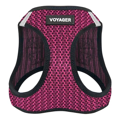 Best Pet Supplies Voyager justerbar hundväst sele andningsbar dragsele för små, medium, stora hundar, slitstark sele för promenader, jogging, lätt att gå in, reflekterande ränder - (fuchsia), M