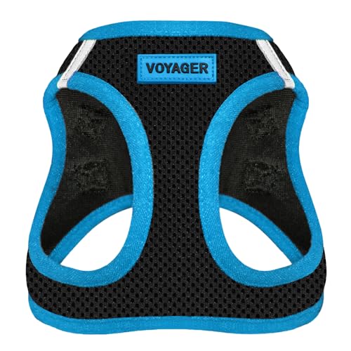 Bästa husdjurstillbehören – alla vädernät/plysch, reflekterande, dragsele för små, medelstora hundar, katter – säker med krok och ögla, spänne, dubbla D-ringar – svart/blå kant, XS