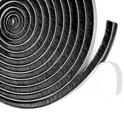 Borsttätning, dörrtätning, självhäftande, 9 x 5 mm (B x H) x 6 m, dörrbottentätning, insektsskydd, tätningsborste för dörr, fönster, garderob, dragstoppare för dörrar