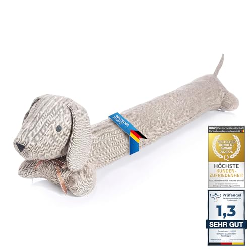 Marwood dragstoppare, dekorativ vindstoppare för dörr och fönster, 107 cm, dörrslang, ljudblockerare för dörrens botten med hängande öglor – grå hund.
