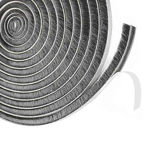 Borsttätning, dörrtätning, självhäftande, 9 x 9 mm (B x H) x 6 m, dörrbottentätning, insektsskydd, tätningsborste för dörr, fönster, garderob, dammtätning, dragstoppare för dörrar