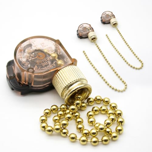 DOJA Barcelona | Dragbrytare | Pack 2 | Dragströmbrytare IP20 | längd 26 cm | AC 250 V-3A | guldmässingsbrytare | för takfläkt, lampströmbrytare, väggfläkt
