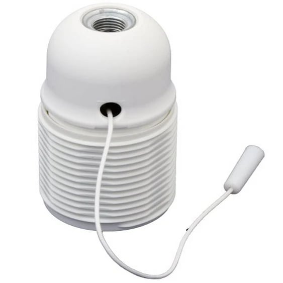 Lamphållare E27 Vit gängad med dragströmbrytare