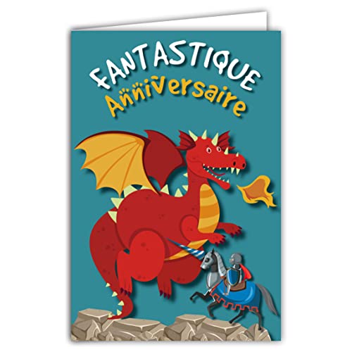 Födelsedagskort drake djur fantastisk pojke riddare ryttare illustration med kuvertformat 12 x 17,5 cm 300 gr ljust papper från hållbart förvaltade skogar tillverkat i Frankrike 69-8049