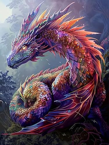 Bimkole 5D Diamond Paintinger För Vuxna Drake, Full Borrmålning Gör-det-själv Strass Broderi Set Färg Med Diamanter Kit Djur Korsstygn Hem Vägg Hantverk Dekoration 30x40cm