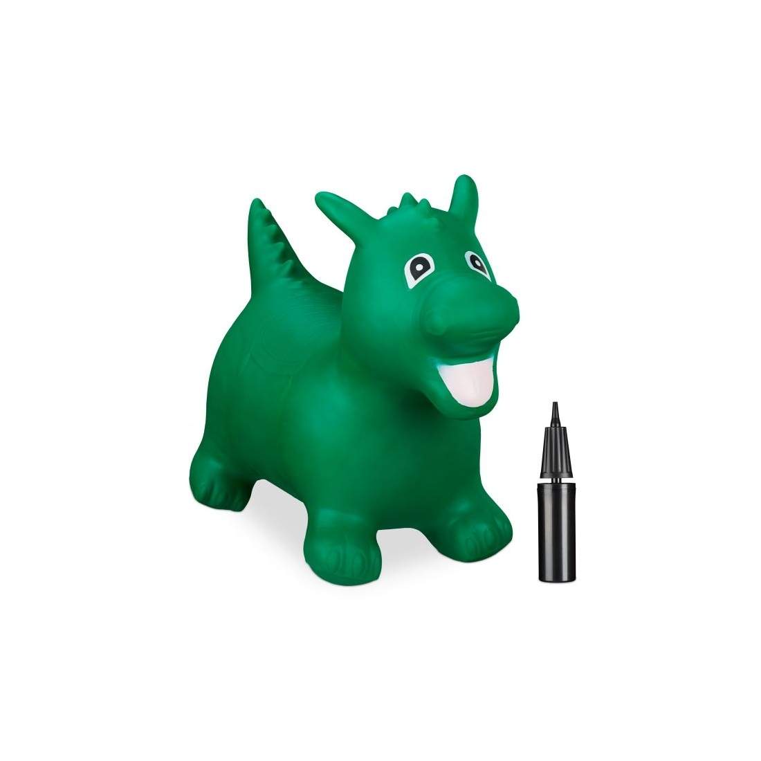 Relaxdays 10030817_53 drake med luftpump, hoppande djur upp till 80 kg, hopser BPA-fri, för barn, studsleksak, grön
