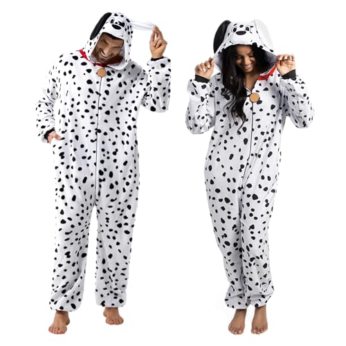 Spooktacular Creations Halloween dalmatiner drake triceratop unisex pyjamas, vuxen djur kostym halloween kostym fest, Vit dalmatiner, L