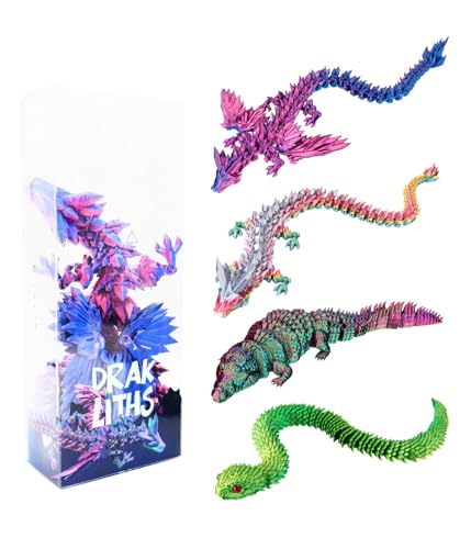 Joy Toy – Drakliths 24159 – 3D-tryckta djur; drake – drake med vingar – orm – krokodil; fullt rörliga djur, fidgetleksak (djur kan inte väljas!)