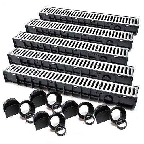 Dräneringsränna höjd = 55 mm, 5 m set inkl. ändkåpa och anslutning DN75