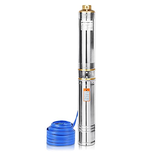 Froadp Djupbrunnspump i rostfritt stål 4 tum, brunnspump 4000 l/h med 20 m anslutningskabel och styrbox 220 V, dränkbar tryckpump sandkompatibel 0,75 kW/1 hp, flödeshöjd upp till 34 m för trädgårdsdammar bondgårdar