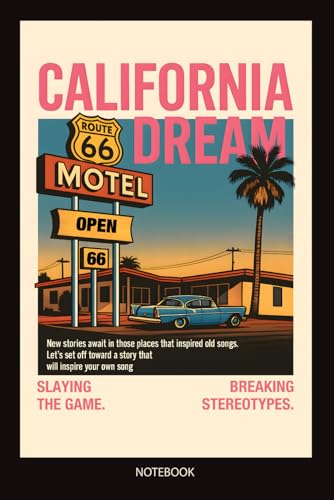 Cool Vintage California Dream Motel with Classic Car Journal Notebook Souvenir Diary: 100 Blank Ruled Pages 6x9 inch: Breaking Stereotypes Slaying the ... Notebook Graphic Design Gifts and Souvenir
