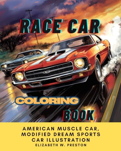 Race Car Coloring Book: American muscle car, Modified dream sports car illustration
