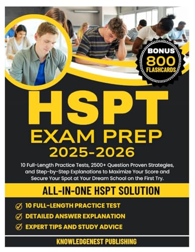 HSPT Exam Prep: 10 Full-Length Practice Tests, 2500+ Question Proven Strategies, and Step-by-Step Explanations to Maximize Your Score and Secure Your Spot at Your Dream School on the First Try.