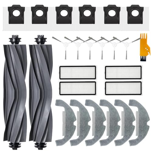 Homruich 25 stycken tillbehör för Dreame D10 Plus Gen 2 robotdammsugare reservdelar, 2 huvudborste, 4 filter, 6 torkdukar, 6 dammpåsar, 6 sidoborste, 1 rengöringsverktyg
