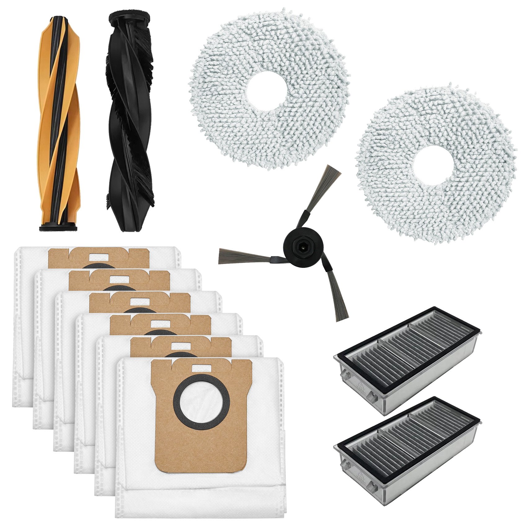 22 stycken tillbehör, X50 Ultra Complete/L40s Pro/L50 Pro robotdammsugare med 2 huvudborstar, 4 rengöringsdukar, 4 filter, 6 dammsugarpåsar, 4 sidoborstar.
