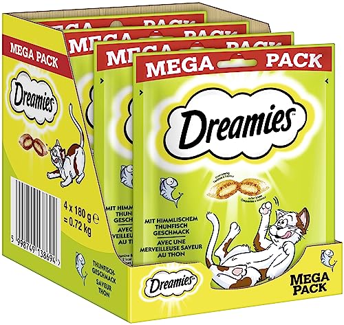 Dreamies Klassiska kattsnacks med tonfisk, kattgodis med krispig konsistens och krämig fyllning, 4 x 180 g