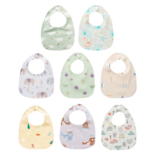 NyxSeat 8 stycken baby-haklappar, absorberande baby-slip-on påse av bomull, bandana, justerbar haklapp med tryckknapp, dregelhaklapp, lämplig för 0–36 månader, flerfärgad, 20 * 27 cm