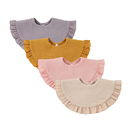 Nishine 4 stycken unisex baby muslinbandana, dregelhaklapp 360 grader, vridbar bomull, barnsjukdomar, matning, dreglande haklapp för pojkar flickor, Gul uppsättning, S