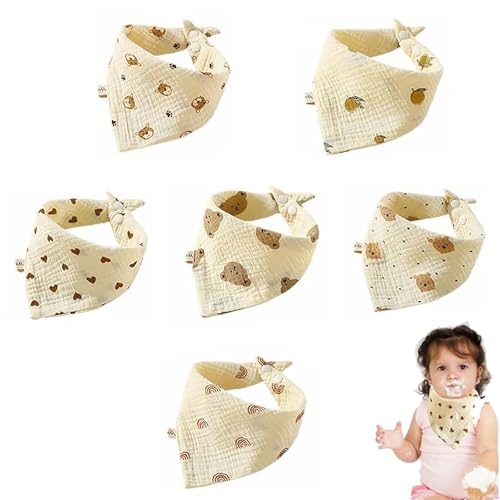6 Triangulära Sjalar, Halsduk, Muslinhaklappar, Dregelhaklapp för Pojkar Flickor 0-36 Månader, Baby Haklapp, Halsdukar för Tänder och Sabber (Beige), M